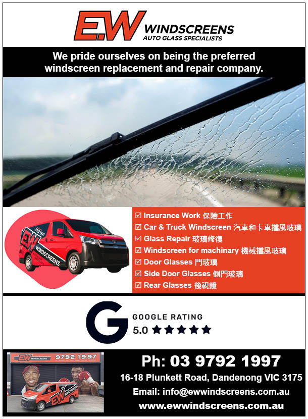 EW Windscreen 16-18 Plunkett Rd Dandenong 3175 03 9792 1997